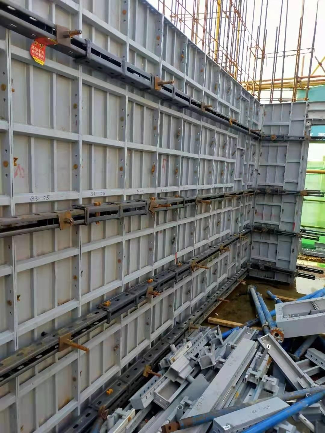 2.不可重復(fù)利用。相對木模的任意拼接(異性除外),鋁模是在工廠定制,出廠即定型,使用時直接根據(jù)圖紙,不同構(gòu)建、不同部位的尺寸使用不同模板,安上螺絲。理論上一套模板只能用在標(biāo)準(zhǔn)層(地下室這類只能使用一次一般不會使用),如果不同樓棟標(biāo)準(zhǔn)層相同也能使用。